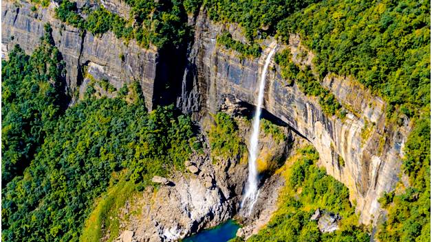 Nohkalikai Falls: This waterfall is located 4 kms from Cherrapunjee and is between 1500 and 2000 feet tall, making it the fourth longest fall in the world. It has a tragic legend associated with its name. A woman named Ka Likai had an illegitimate child. Her jealous husband killed their daughter, cooked her, and served her to Ka Likai. After discovering the truth, she killed her husband and jumped off the cliff, leading to the waterfall's name, Fall of Ka Likai.