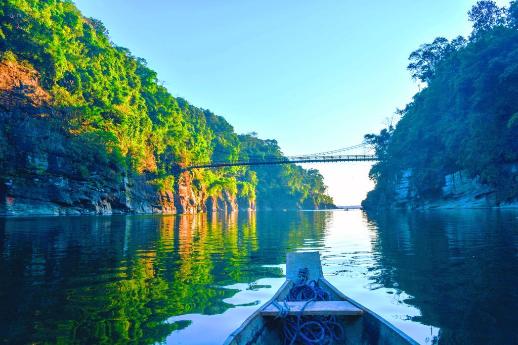 Dawki (Bangladesh Border): Visit the scenic border town of Dawki, known for the crystal-clear waters of the Umngot River, offering stunning views of the India–Bangladesh border.