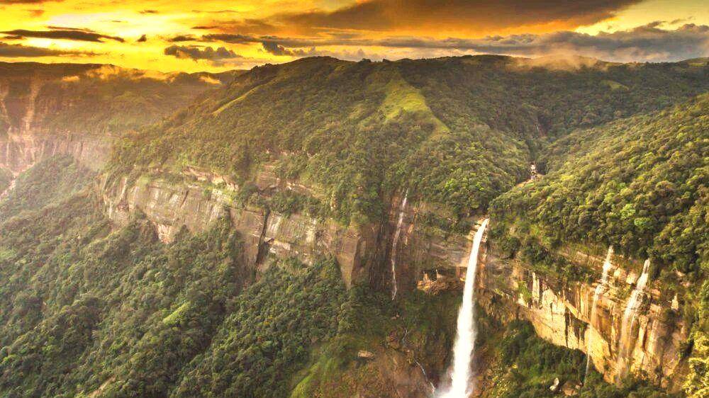 Nohkalikai Falls: This waterfall is located 4 kms from Cherrapunjee and is between 1500 and 2000 feet tall, making it the fourth longest fall in the world. It has a tragic legend associated with its name. A woman named Ka Likai had an illegitimate child. Her jealous husband killed their daughter, cooked her, and served her to Ka Likai. After discovering the truth, she killed her husband and jumped off the cliff, leading to the waterfall's name, Fall of Ka Likai.